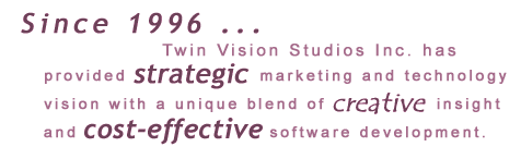 Twin Vision Studios, Inc. is an Internet and multimedia technology solution provider. We assist clients in strategic Internet business planning,