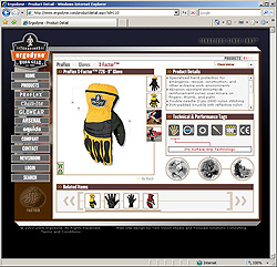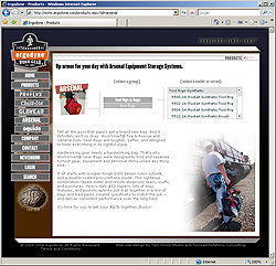 This Flash and HTML hybrid Web site differentiates itself by using interactive Flash and Ergodyne's unique visual brand. This Web site uses database-driven Flash to populate product pages, categories, and a daily Factoid. The associated administration system allows users to control content and drag-and-drop hot spots onto product images.