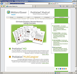 The ProVation Medical, Inc. is the leading provider of physician and preoperative procedure documentation software. They provide an enterprise-wide solution available to multiple medical specialties that promote productivity, cost-reduction, compliance and - most important - broad-based utilization and satisfaction by physicians, nurses other caregivers.